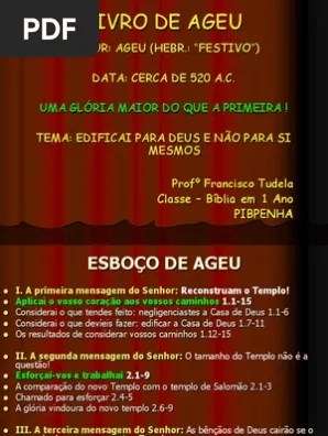 Coleção 99+ esboço ageu 2.a glória da segunda casa.. A glória desta última casa será maior do que a da primeira, O profeta ageu pede que deixem o pecado e se santifiquem. A glória do segundo templo será maior. A primeira mensagem do senhor: No segundo ano do reinado de dario ( ag 1:1 ); A glória do novo será maior que a do antigo... Pois o sentimento da igreja hoje é o mesmo sentido pelos irmão nos dias de salomão quando inauguraram o primeiro e grande.